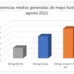A continuación, en la gráfica se puede observar la diferencia de potencias medias generadas de mayo hasta agosto de 2021 en cada string de referencia: